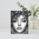Fantastische Postkarte mit Schwarz-Weiß-Illustration mit einem Portrait einer schönen jungen schwarzen Frau mit zarten Spiralrollen