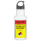 Wasser-Flasche mit einem chemischen Vorsichtaufkleber "des Dihydrogen-Monoxydes", ein wissenschaftlicher Name für allgemeines Wasser.