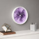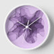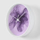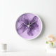 Elegante Wanduhr mit lila und violetter Illustration, die eine Tiefe simuliert, als ob sie aus Papierstücken gemacht wäre. Eine tolle Ergänzung zur Wanddekoration für Ihr Büro oder Ihr Wohnzimmer. Die Schichten werden simuliert, es ist ein Druck. Illustriert und entworfen von Patricia Alvarez.