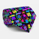 Farbige Quadrate und Kreise auf schwarzer Krawatte. Schauen Sie auch auf den Schuh: