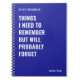 Funny Notebook für Büromitarbeiter, Manager, Arbeitsfreunde oder andere Verwaltungs- und Geschäftsleute. Personalisieren Sie den Namen, der am Ende des Covers "Dinge, an die ich mich erinnern muss, aber wahrscheinlich vergessen wird" gedruckt werden soll. Individuelle Name Notizbücher eignen sich hervorragend für Jubiläen, Feiertage, Bürogeschenke und vieles mehr!