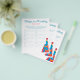 Dieses Spielblatt ist perfekt für Brautpartys. Es fordert die Party auf, sich bei einer Hochzeit, die mit jedem Buchstaben des Alphabets beginnt, etwas vorzustellen, das sie vielleicht sehen. Wenn ihre Vermutung die gleiche ist wie die der Braut, bekommen sie einen Punkt. Dieses Spielblatt zeigt eine historische Frau in einem lebhaften Kleid in leuchtend blauen, heißen Rosa und Gelb.