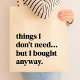Einfache, stilvolle "Dinge, die ich nicht brauche, aber ich habe trotzdem" maßgeschneiderte Kunst Design in modernen minimalistischen Typografie in schwarz. Das perfekte Accessoire für einen ShopAlkoholiker!