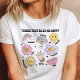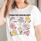 Feiern Sie die einfachen Lebensfreude mit unserem Shirt "Dinge, die mich glücklich machen". Dieses reizvolle Design zeigt niedliche Illustrationen von Regenbogen, Natur, Lächeln, Ruhe, Blume, Sonnenschein, Kaffee und Essen und erinnert Sie an die kleinen Dinge, die Glück bringen. Perfekt um positive Vibes zu verbreiten und einen fröhlichen Ausblick zu genießen.
