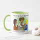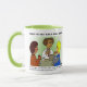 Eine Tasse mit einem lustigen Cartoon darüber, was man in der Mittelschule hören kann. Bild, Hintergrund und Text können personalisiert sein. Originelle Kunstwerke von DBcartoons.