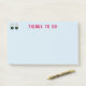 Post-it notiert mit zwei Augen auf hellblauem Hintergrund und dem Titel "DINGS TO DO". Bild und Text können personalisiert sein.