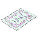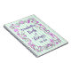 Quirky Spaß Design, dass Sie personalisieren können. Rosa Rahmen gefüllt mit Süßigkeiten, Kuchen, Sternen und Herzen auf einem Hintergrund von Pfefferminzgrün und Weiß Streifen.
