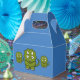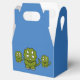Gastgeschenk in blau in einem Gable-Stil mit einem niedlichen Cartoon-Dino. Passen Sie dieses Element an und fügen Sie Ihren eigenen Text hinzu oder kaufen Sie, wie es ist, und fügen Sie ein hübsches Band.