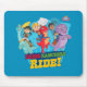 Dieses Design spiegelt den Geist des Abenteuers und der Freundschaft wider, der die Dino Ranch ausmacht. Es zeigt die Kerngruppe menschlicher Charaktere der Show - Jon, Jane und Miguel -, die ihre treuen Dinosaurier-Gefährten reiten. Die Szene ist voller Energie und Bewegung, während die Fahrer und ihre Dinosaurier auf eine spannende Reise gehen. Jon, Jane und Miguel sind mit ihren fröhlichen Ausdrücken selbstbewusst auf ihren jeweiligen Reittieren positioniert. Die Dinosaurier, Blitz, Clover und Tango, die in einem hellen und freundlichen Stil gehalten sind, zeigen eine Reihe von Persönlichkeiten und Posen. Die Phrase "DINO RANCHERS RIDE!" wird prominent angezeigt und verleiht der Szene ein Gefühl von Aufregung und Abenteuer. Das Design ist lebendig und dynamisch und spiegelt den Spaß und die Begeisterung der Dino Ranch Welt wider.