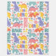 Ein lebendiges und lebendiges Muster mit verschiedenen Dinosauriern, Bruteiern, Fußabdrücken und spielerischem Text von "Dino" und "Roar!". Das farbenfrohe Design präsentiert verschiedene Dinosaurier-Arten in weichen Pastellfarben und kühlen Farbtönen und bringt eine fröhliche, prähistorische Energie.
