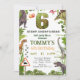 Dinosaurier 6. Geburtstagsfeier Einladung. Geburtstagseinladung für Stomp, Chomp & Rosen