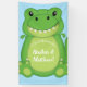 Niedliches Dino Baby Duschdesign mit einem ansprechenden T-Rex Dinosaurier Cartoon! Ideal für einen kleinen Jungen auf dem Weg in Blau!
