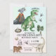 Eine Dino-Milbe Dinosaurier Geburtstagsfeier mit einem bösen Jungen T-Rex, Vulkanausbruch, Brontosaurus, Triceratops und Dino-Eiern. Ein niedlich angesagtes Dino-Design für die Kindergeburtstagsfeier.
