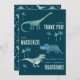 Zeit, Ihren Gästen für eine wilde Geburtstagsparty zu danken! Ein lustiger Haufen von bezaubernden Dinosauriern, bereit, sich mit dem Namen Ihres Kindes und danke Ihnen Nachricht anpassen. Ideal für jeden Jungen oder Mädchen. Die Rückseite weist ein passendes Dinosaurier-Muster auf. Originelle Kunst von Nic Squirrell.