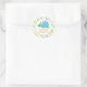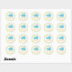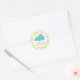 Dieser niedliche Dinosaurier-Aufkleber hat einen orangen, grünen und blauen Streifen Hintergrund. In der Mitte ist ein Kreis mit einem blauen Dinosaurier mit einem Party, der auf seinem Kopf steht. Unter der Dino können Sie den Text leicht personalisieren!