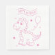 happy birthday dinosaur theme birthday party supplies, perfect for a birthday party for girl. A clean pink outline design that looks sweet and fun on a white luncheon napkin. Co-creation with generative AI.