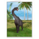 3D digitale Darstellung eines Dinosauriers Brachiosaurus auf dem Hintergrund des blauen Himmels und der grünen Palmen