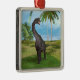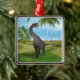 3D digitale Darstellung eines Dinosauriers Brachiosaurus auf dem Hintergrund des blauen Himmels und der grünen Palmen