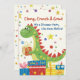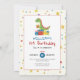 Lade deine kleinen Freunde mit diesem fröhlichen Dino ein, das mit Farbe und Spaß überflutet! Ideal für einen rauen Geburtstagsschlaf. (AI-Generated Artwork)