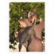 3D digitale Darstellung eines Dinosaurier-Gigantoraptors auf einem roten Himmel und einem grünen Baumhintergrund