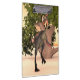 3D digitale Darstellung eines Dinosaurier-Gigantoraptors auf einem roten Himmel und einem grünen Baumhintergrund