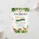 Diese bezaubernde Geburtstagseinladung beinhaltet tropische Aquarellfarben-Blätter mit Goldfolienschmuck und Golddinosaurier-Silhouetten.