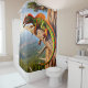 Dieser Duschvorhang hat eine Dinosaurier-Eidechse darauf.