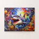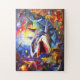 Ein lebendiges, abstraktes Ölkunstwerk aus regenbogenfarbenen Dinosauriern, die die Planeten der Galaxie durchlaufen.