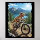 Dinosaur Mountain Biking Through Forest Trail Poster