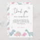 Niedliche Dinosaurier Thema Mädchen Geburtstagsparty danke Ihnen Karte mit der Abbildung von Dinosauriern und Sternen. Die Nachricht dankt den Gästen für den Besuch des Party. In dem Text oben steht: "Danke, dass du gekommen bist."