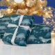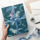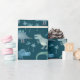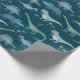 Viele blaue Dinosaurier auf dunkelgrünem, aquamarinem Hintergrund. Tyrannosaurus Rex, Spinosaurus, Stegosaurus, Diplodocus und Triceratops. Ideal für aufstrebende Paläontologen! Originelle Kunst von Nic Squirrell.