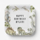 Cooles Dinosaurier-Thema, Geburtstagsfeier-Teller. Wasserfarbenes prähistorisches Blattwerk und Dinosaurierrahmen.
