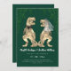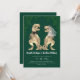 Make your wedding unforgettable with this funny dinosaur-themed wedding invitation, featuring a watercolor T-Rex bride and groom in brown beige tones. Surrounded by lush eucalyptus jungle foliage and set against a rich dark emerald green background, this modern Jurassic design is perfect for couples who love dinosaurs and want a unique, whimsical twist on their wedding stationery.