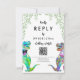 Dinosaur themed Hochzeit RSVP Online QR Code Website Antwortkarte mit lustigen Dinosaurierbride und Bräutigam mit Aquarell eucalyptus foliage zu bringen prähistorischen Jurassic Freude an Ihrem Hochzeitstag. Moderne whimsical Typografie mit leicht zu personalisierenden Vorlagen, sodass Sie die Hochzeitswebsite QR-Code und Browser-Web-Adresse und hilfreiche Gastanleitung hinzufügen können. Einzigartige funky psychedelische T-Rex Braut und Bräutigam mit botanischem Aquarell Original-Kunstwerk der Künstlerin Catherine Sweetman Ideal für den Hochzeitstag Empfang oder Probe Dinner. Die passende Hochzeitssuite beinhaltet alles, was Sie für Ihre lustige Hochzeitsreise benötigen