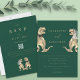 Dieser spaßige Dinosaurier-Themed Wedding QR Code dunkelgrüne Einladung ist eine spielerische und dennoch stilvolle Wahl für Paare, die eine Liebe für Dinosaurier teilen und wollte, etwas Spaß in ihre Hochzeitsarbeit zu stecken. Das Design vereint schlichte Eleganz mit leichtem Charme und bietet eine skurrile Aquarellillustrierung einer T-Rex Dinosaurier Braut und Bräutigam. Das moderne Drehbuch fügt eine zeitgenössische Touch hinzu, wobei die Einladung schicken bleibt und gleichzeitig die einzigartige Persönlichkeit des Paares hervorgehoben wird. Die einfach zu bedienenden Vorlagen machen die Personalisierung mühelos und ermöglichen es Ihnen, die Details in stilvoller Typografie so zu gestalten, dass Ihr Hochzeitstil Anzug findet. Der beiliegende QR-Code verlinkt direkt zu Ihrer Hochzeitswebsite und ermöglicht den UAWG eine einfache Online-Nutzung. Diese einzigartigen Illustrationen, die von der Künstlerin Catherine Sweetman entworfen wurden, spiegeln das lustige, sonderbare Ambiente eines Dinosaurier liebenden Paares wider und bewahren gleichzeitig ein elegantes und raffiniertes Ambiente. Dieses Design ist perfekt für Paare, die eine Hochzeitseinladung suchen, die so einzigartig ist wie ihre Beziehung, und wird Ihren Gästen ein Lächeln bringen und Set für ein unvergessliches Fest machen.