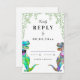 Erleben Sie Ihren Hochzeitstag mit dieser farbenfrohen Dinosaur-UAWG-Antwortkarte, die mit einer spielerischen T-Rex Braut und einem Bräutigam umgeben von botanischem Aquarell ausgestattet ist. Mit ihrer skurrilen, modernen Typografie und ihren leicht zu personalisierenden Vorlagen erweckt diese Karte den Spaß Ihrer prähistorischen Liebe. Das einzigartige T-Rex-Design, in kräftigen Braun- und Eukalyptus-grünen Farbtönen gehalten, ist eine charmante Mischung aus spielerischer Romantik und Natur, die alle von der talentierten Künstlerin Catherine Sweetman zum Leben erweckt werden. Diese RSVP-Karte eignet sich ideal für Hochzeitsempfang oder Probe-Dinner und ist Teil einer kompletten Hochzeitssuite, die alles bietet, um Ihre Hochzeit so unvergesslich und fröhlich wie Ihre Liebe zu gestalten. Lass diesem lustigen und kreativen Design-Set den Ton für deine Dino-Themenfeier!