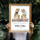 Herzlich willkommen auf der wunderschönen Wiese der prähistorischen Wildblume mit dem lustigen Dinosaurier-Hochzeitsposter mit lustiger T-Rex Braut und Bräutigam. Wenn Sie und Ihre Partnerin Liebe Dinosaurier sind, ist dies der perfekte Weg, um Ihnen eine abwechslungsreiche Dino-Liebe zu einem ganz besonderen Tag zu bringen. Einzigartige Tyrannosaurus-Rex-Illustrationen und farbenfrohe Aquarellflorale in blau rosa lila-gelb-orange und grün Wildblume. Einfach zu bedienende Vorlagen mit modernen whimsical Typografie-Skripten. Original-Kunstwerk von Catherine Sweetman