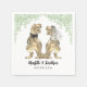 Genießen Sie Ihre Gäste mit diesen lustigen Dinosaurier-Themen Hochzeit individuelle Servietten mit lustigen Dinosaurier Braut und Bräutigam und Aquarell eucalyptus foliage. Einfach mit den Namen der Braut und der Bräuche, dem Hochzeitstag in modernen Typografie-Skript anpassen. Fun T-Rex Braut und Bräutigam Illustrationen in braunen Tönen mit botanischer Wasserfarbe in grünen Farbtönen. Originelle Dino-Kunstwerke der Künstlerin Catherine Sweetman