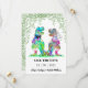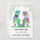 Freuen Sie sich auf diese lustige Dinosaurier-Hochzeit T Rex Braut und Bräutigam mit Waldbewaldung Save the Date. Einfach mit den Namen der Braut und der Zelthäute und dem Hochzeitstermin anpassen. Farbenfrohe Aquarell T Rex Braut und Bräutigam Illustrationen mit moderner Typografie. Einzigartiges Originalwerk von Catherine Sweetman
