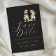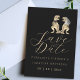 Perfect for fun-loving couples, this unique design showcases charming watercolor illustrations of a T-Rex bride and groom on a black background paired with stylish modern typography script. Easily personalize with your names and wedding date to create a memorable first impression for your big day.