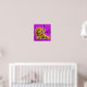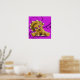 Ein niedlicher Babytriceratops mit ihrem Kopf neigte sich an und lächelte dich an. Mit Blumendesign auf lila Hintergrund dargestellt. Die Größe des Posters beträgt 16" x 16".