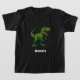 Für einen schwarz/dunkel T - Shirt. Ein Bild eines Tyrannosaurus Rex. Personalisieren und einen Namen hinzufügen. Weißer Text.