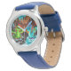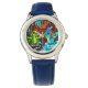 Kinderuhr aus Edelstahl mit blauem Lederarmband