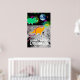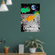 Cartoon Dinosaurier auf dem Mondposter drucken. Zwei niedliche kleine Astronauten Dinosaurier grüne Triceratops und orangefarbener Diplodocus im Weltraum auf dem Mond mit Farbstern und einem schönen blauen Planeten Erde Plakatdruck mit anpassbarem Text "Ein kleiner Schritt für Dinosaurier". Diese farbenfrohe Dinosaurier Freunde in Space Poster ist vollständig anpassbar, fügen Sie Ihren Text und Bilder! Ein wunderschönes Weltraum-Reise-Cartoon-Tiergeschenk für die großen kleinen Dino-Fans!