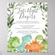 Mit unseren Dinosauriern, die sich in der Spätnacht in Windeln tummeln, geben Sie Ihren Gästen eine schöne Orientierung. Das Baby Duscheck ist mit Aquarell-Eukalyptus-Garland und elegantem handgeschriebenem Schriftart ausgestattet.