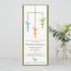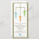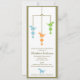 Drei niedliche Dinosaurier im blauen, grünen und orange Fall von einem Mobile auf dieser entzückenden Babyduscheneinladung.