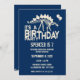 Jurasische Stegosaurus-Knochen mit Ballons, Einladung zur Geburtstagsfeier in dunkelblau oder ändern den Hintergrund zu dunklen Farben, um dem Geburtstagsparty-Schema Ihres Kindes zu entsprechen. Genießen Sie eine prähistorische Dinosaurier Geburtstagsfeier und laden Sie Freunde zu einer lustigen Mission ein, gräben Sie sich nach Knochen oder gehen Sie auf eine Scavenger-Jagd, es gibt viele tolle Ideen, um mit dem Dinosaurier-Thema mitzumachen.