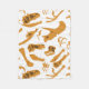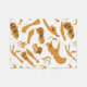 Gold und weiße Dinosaurierknochen wiederholen Muster! Zu den Dinosauriern in diesem Design zählen Tyrannosaurus Rex, Allosaurus, Parasaurolophus, Triceratops, Brachiosaurus, Spinosaurus und Velociraptor.