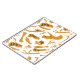 Gold und weiße Dinosaurierknochen wiederholen Muster! Zu den Dinosauriern in diesem Design zählen Tyrannosaurus Rex, Allosaurus, Parasaurolophus, Triceratops, Brachiosaurus, Spinosaurus und Velociraptor.