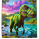Dieser Duschvorhang hat einen Dinosaurier darauf.